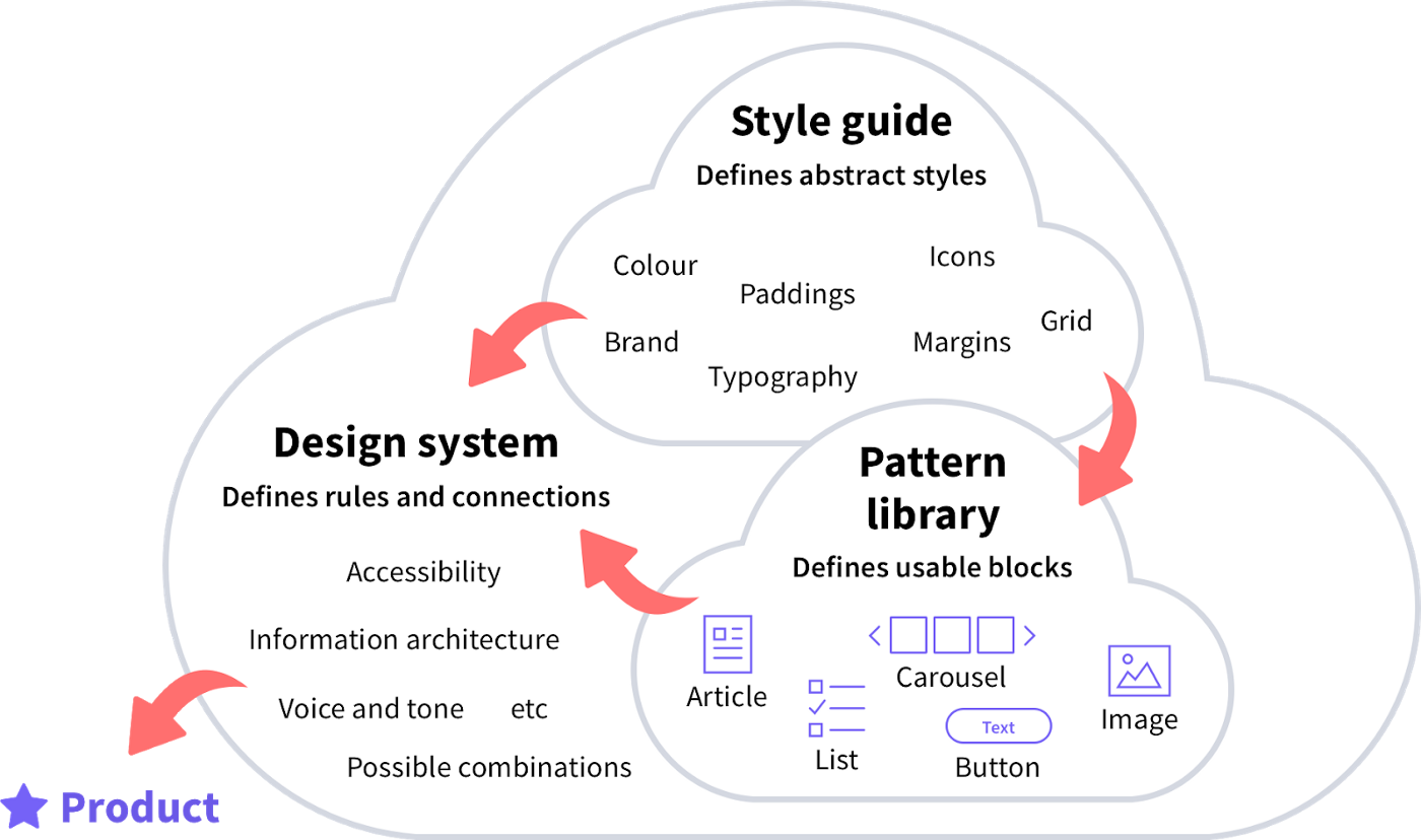 Consistency: Keeping consistency across an interface is not an easy task, there are many elements with countless variations. Designing interfaces has shifted from a very manual process (creating individual pages) to a more systematic one by designing with components. Components are the pieces of the puzzle that will come together to form the interface. This is when a design system comes in. A design system is mainly formed by a pattern library (where your components live) and a style guide. By having all your components and styles in one place you will be one step closer to having a consistent website or app.
